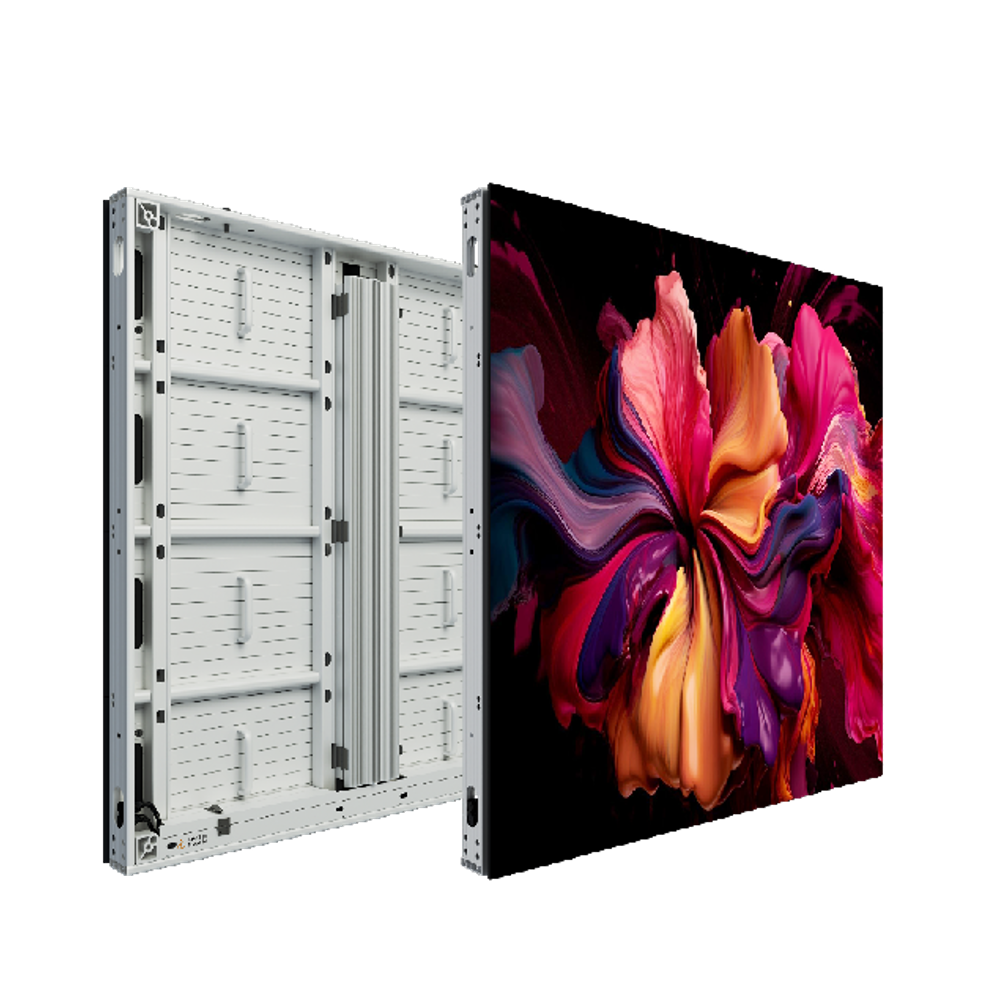 High-precision aluminum profile cabinet is only 87mm thick/19.5kg (500×1000mm),500×1000mm and 500×750mm cabinets are free to mix and match shaped shapes, sharing the same type of control box. Push-button lock realizes 5 seconds fast disassembly and assembly, optional arc lock supports curved surface splicing. Fanless ≤ 40dB silent operation, point-by-point calibration to ensure pixel-level uniformity. 3840Hz high refresh to eliminate 1/3000s shutter residual shadow, for stage performances, conferences, to provide a broadcaster-level visual base.