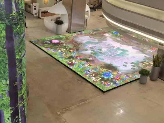 A key feature of these floor tiles is their interactivity. When shoppers step on them, the screens respond with visual effects. For example, walking over the tiles might trigger digital patterns that follow their movement, like fluttering shapes or parting designs. This interaction adds a bit of engagement to the shopping trip, potentially encouraging visitors to stay longer and explore more of the mall.